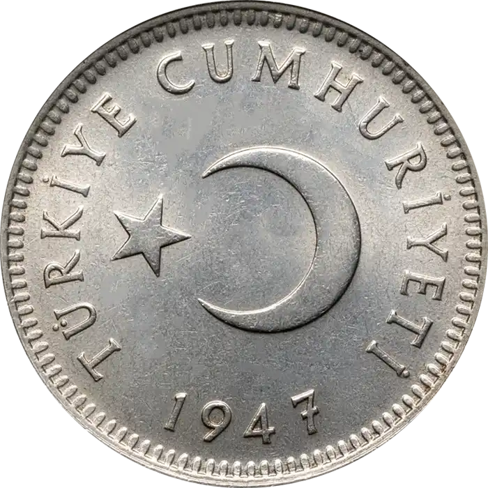 | Tura Yönü | Ortada, sola dönük ay yıldız ve etrafını saran "TÜRKİYE CUMHURİYETİ" yazısı, hemen altında "1947" tarihi. |